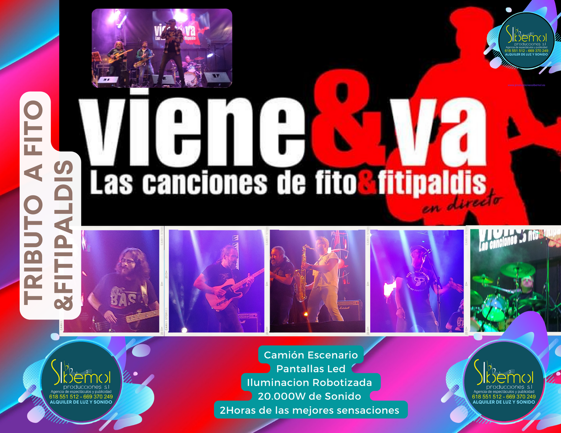Banda compuesta por: Guitarra, Bajo, Saxo, Batería, voz solista. Dos horas de Show con el mejor tributo a Fito& Fitipaldis, siendo fieles al estilo del artista original. Disponibilidad de equipo de sonido, iluminación, camión escenario...